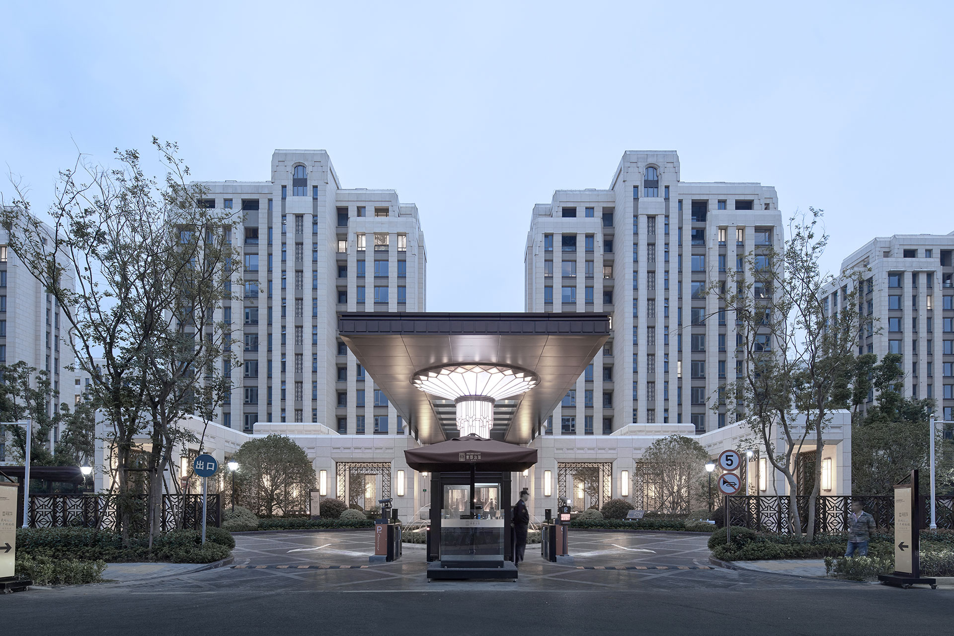 上海葛洲坝虹桥紫郡公馆位于上海市西虹桥门户位置,处于吸引众多外籍人才群集的高端社区群中,周边多为别墅区,且配有多所国际学校,已形成区域性国际化生涯圈。针对周边已形成的客群圈层文化,设计伊始即明确定位:以“把家何在公园里,强化业主归属感”为设计构想,辅以产品力立异及科技智能系统的融入,为业主营造一个“私人定制”、“唯一无二”的生涯感受,修建西虹桥地区标杆性高端国际化豪宅社区。设计将“60m*150m公共绿地”焦点资源最大化使用,打造以中央水池为中心的中央景观轴,并设计尊享豪华的旅馆式入户大堂、风雨连廊、宜人标准的下沉庭院、充满阳光的地下车库等一系列地上地下多进空间,以切合业主的圈层文化配景,形成一个旅馆化的国际社区,在场景感中体验小区景致。造型设计整体遵照“头部收分、中段标准、基座一连”三段式手法的经典美学比例,并以细腻的修建细部、高尚高雅的色调、内化品牌的标识实现美式大都会气概的专属定制,营造艺术人文气息。