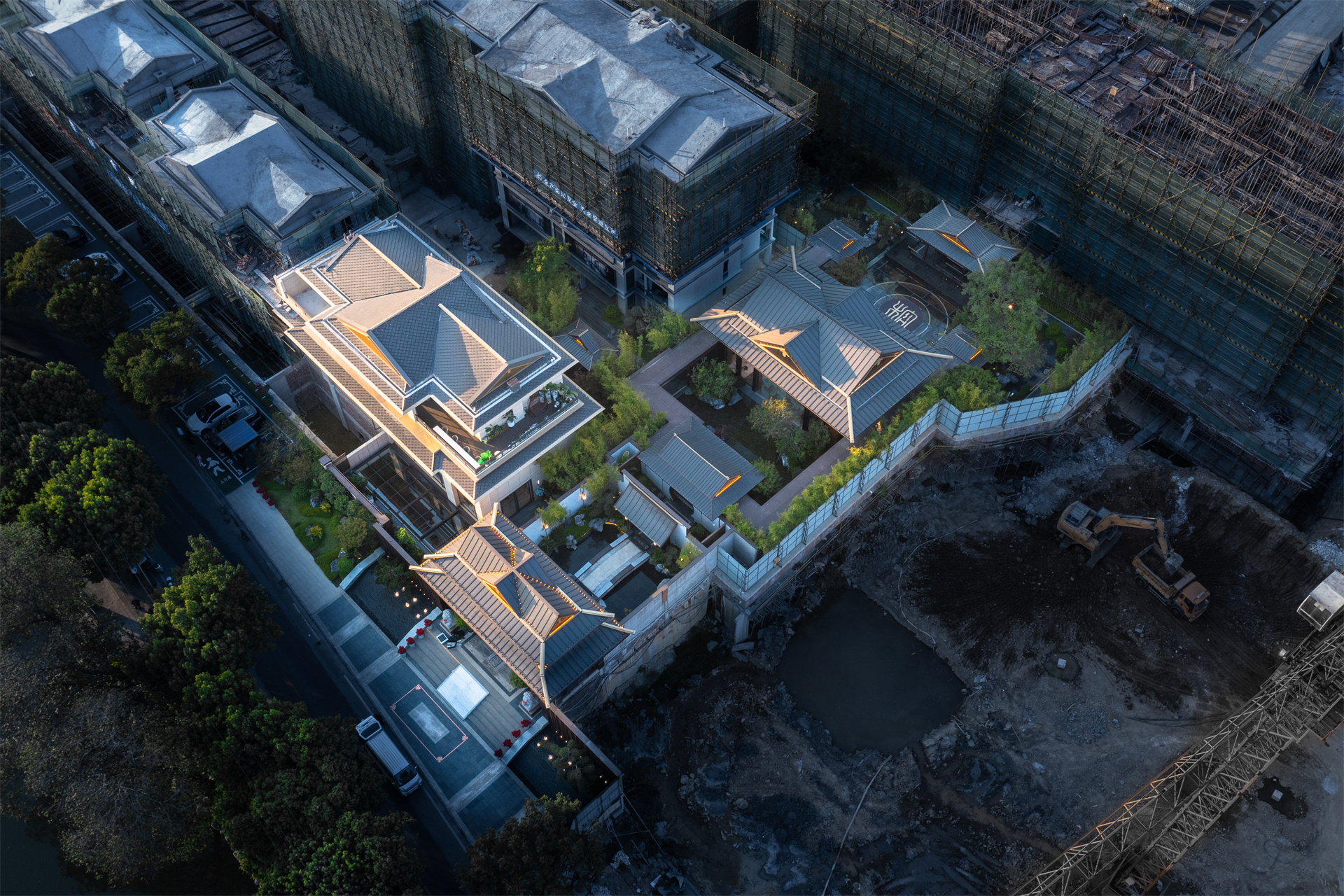 桂林兴进榕湖公馆,地处都会焦点区,秀峰区两江四湖毗连处,景观资源绝佳,一公里内拥有桂林市最好的幼儿园、小学、初中和高中,2公里内医疗商业齐全,轻松拥有10分钟便捷生涯圈,拥有绝无仅有的“高端社区”的整体定位。设计以“家在榕湖畔 住在两江四湖里”为设计理念,先造一个院子,再做若干园子,再在园子里种屋子,打造一个官式府邸、滨湖高尚寓所。
