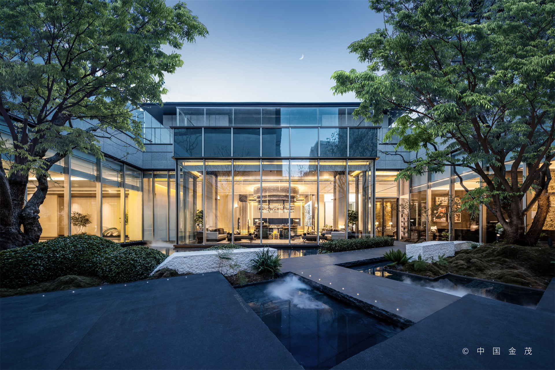 上海张江金茂府展示中心打造了一个对标万万级豪宅才有的建面约1800㎡新奢私享会所!不但是圈层进阶的社交场,更是分享志趣和品味的绝佳之处,涵盖商务会晤、私密洽谈、泳池畅游、瑜伽健身、品茗休闲、儿童天地等多元功效。星级标准打造的恒温双泳池,会所内健身区的功效包括有氧区、器械区、瑜伽区,装备同步五星级旅馆健身器材设置,知足业主们未来的种种健身需求。中央洽谈区举行邻里交流,举手投足间尽显优雅品味,这样的空间设计既有排面,也很适用,相当于业主的第二客厅。下沉水景庭院,与周围修建融为一体,以静水、原石、浮桥、古树、自然微地形为精神前言,将自然与松懈感带给社区。乌桕林、7m高磅礴大气的跌水景墙、地面水景等交相辉映,黄昏或晚上,星光映入水中,让人感受自然的浪漫。