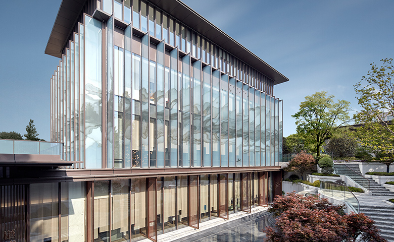 郑州华润新时代广场展示中心的团队依据地理位置的优越性,将“园地狭窄、设计周期短”的劣势,转化为“既在精简构想下凸显修建的标识性,又在控制体量的条件下争取较大的前场空间”的优势,以匹配大规模、多功效大区风范展示的需求。团队深入现场挖掘园地空间,并经与政府的充分相同,借力市政绿化的一部分空间,在研究人的行为模式和视觉感受之下,打造出不输气场的前场空间。为将简朴的形态做到极致,设计通过对形体演绎、材质选用、细部优化三个层面的把控,实践三层序漂浮构想;同时,将水与树植入情形气氛的营造,与修建形成“毗连体”,陪衬出修建的漂浮之感。